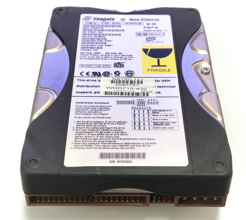 NEC N8150-121 増設用HDD (Seagate ST320410A) 20GB E-IDE 5400rpm