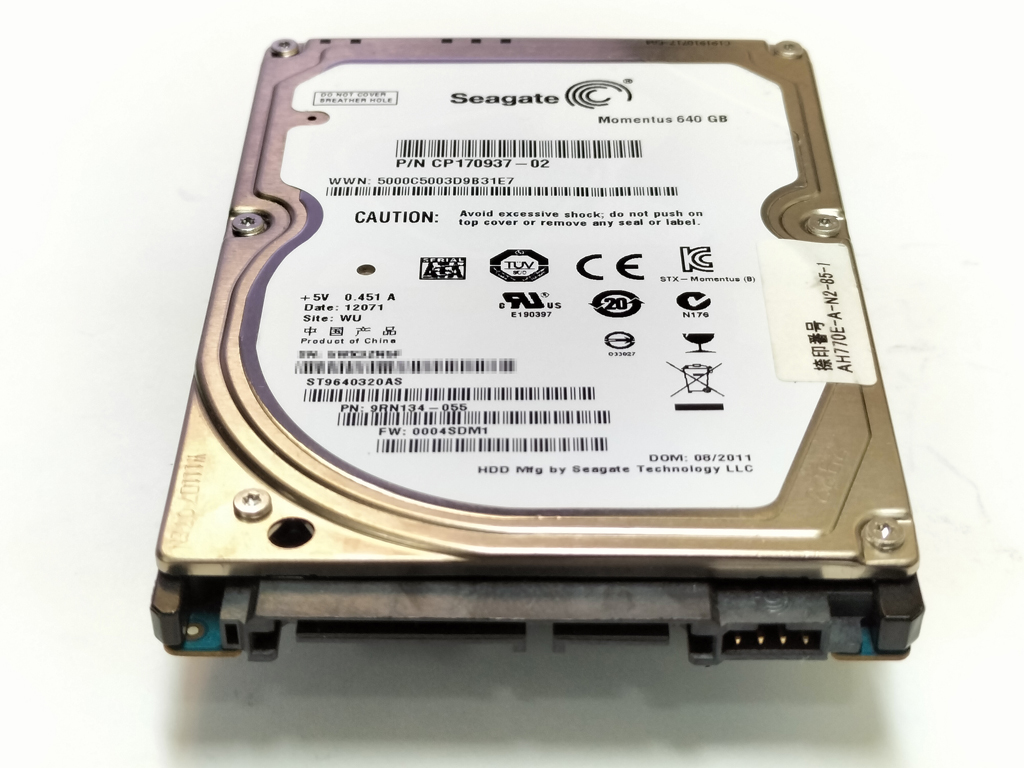 Seagate製のハードディスク ST9640320AS です。 ノートPCなどに搭載されることの多い 2.5インチ/約9.5mm厚 タイプのHDDです。 フォーマットを行い、CIPHERコマンドによるデータ消去、HDD SCAN V2.0により不良クラスタがない事を確認し、CrystalDiskInfoにて正常判定を確認しています。 詳しい仕様は表よりご確認下さい。 写真は流用していますので、細かなシリアルナンバー等は実物とは異なる場合 もございますのでご了承下さい。