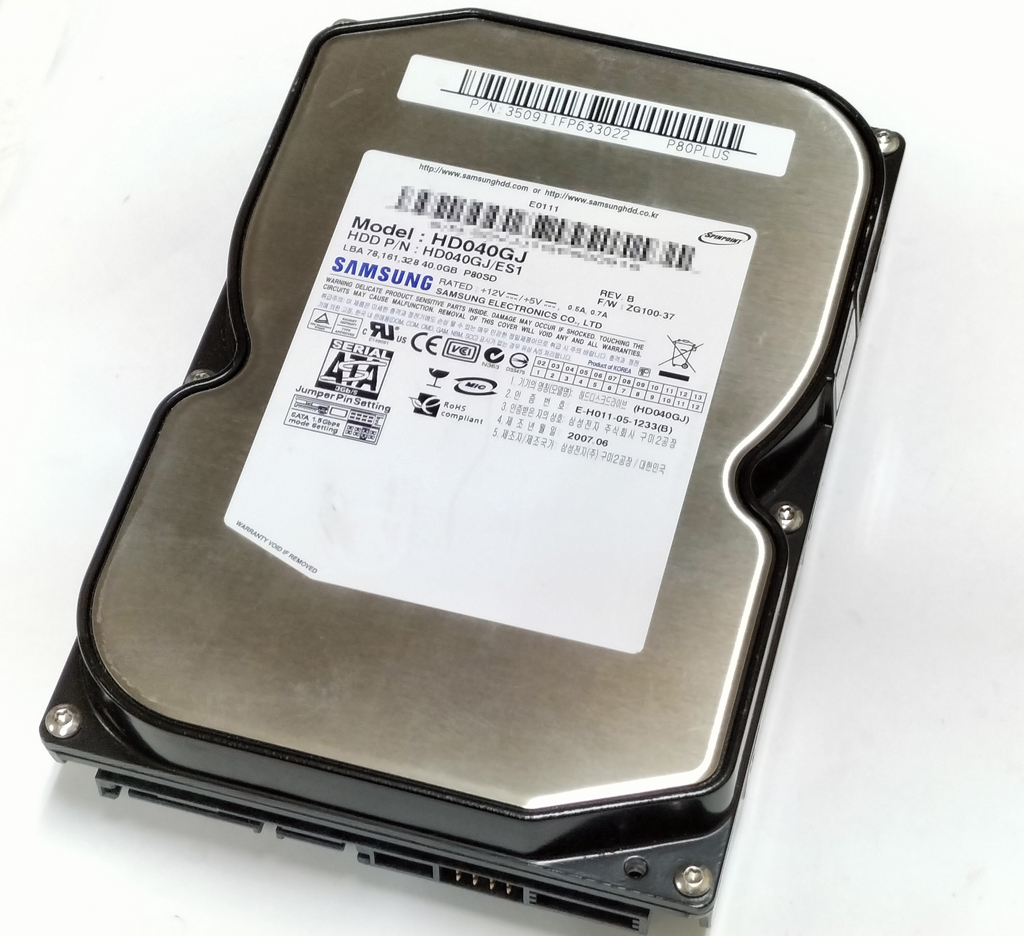 SAMUSUNG製、40GB SATAハードディスク、SpinPoint P80SD シリーズです。 モデルナンバーは、HD040GJ です。 中古のハードディスクです。 詳しい仕様は表をご覧ください。 フォーマットを行い、HDD SCAN V2.0により不良クラスタがない事を確認しております。 写真は流用しています。HDDに貼られているステッカーや細かなシリアル ナンバーなどは実物とは異なる場合があります。ご了承ください。