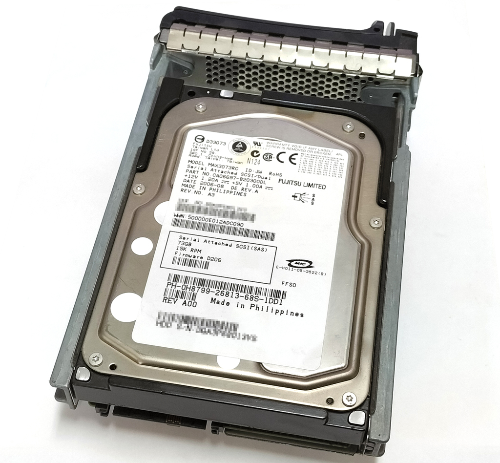 富士通製のサーバ用ハードディスクです。 詳しい仕様は表のとおりです。 稼働時間は500時間以下です。 SMART StatusはOK状態です。 データ消去済みです。 写真は流用していますので、細かなシリアルナンバーなどは実物とは異なる場合があります。ご了承ください。