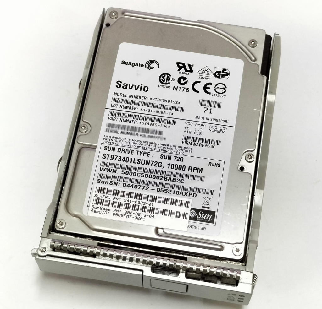 Sun製のサーバ用ハードディスクです。 詳しい仕様は表のとおりです。 SMART StatusはOK状態です。 データ消去済みです。 写真は流用していますので、細かなシリアルナンバーなどは実物とは異なる場合があります。ご了承ください。